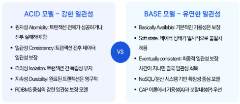 BASE 모델: 대규모 분산 시스템(SNS, IoT, 로그 처리 등)에서 사용