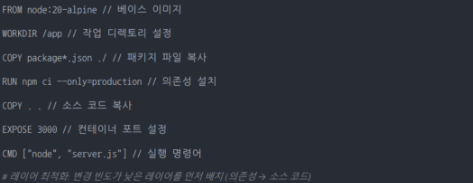 • 효율적인 Dockerfile 작성, 계층화된 이미지 관리, 안전한 레지스트리 활용이 컨테이너 배포의