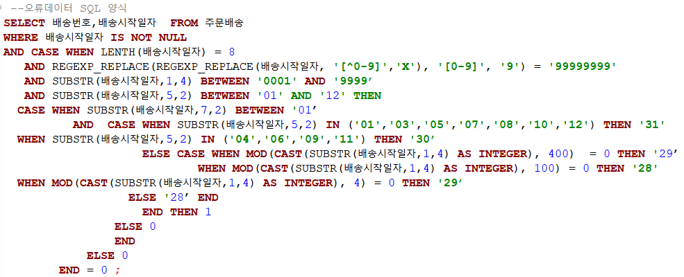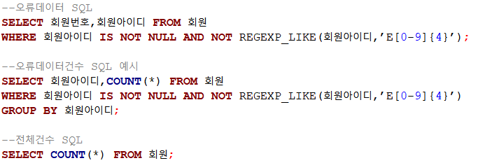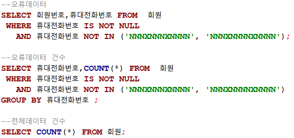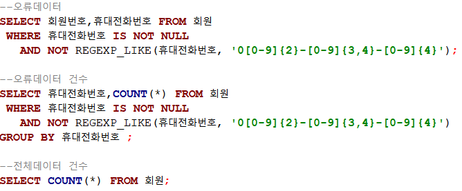 [그림 3] 휴대폰번호 오류검사 쿼리(정규식)