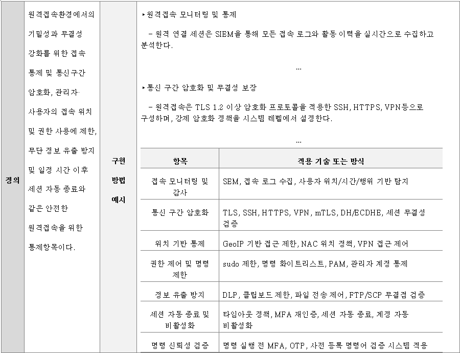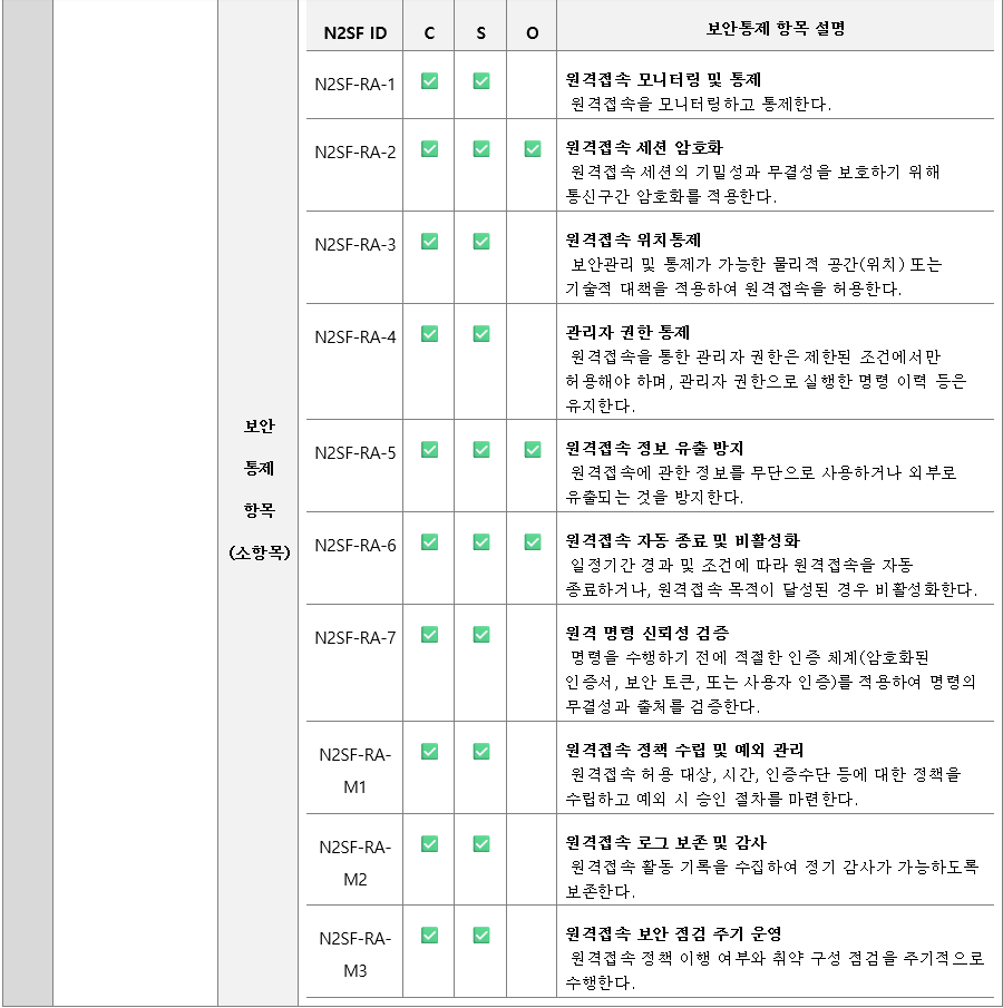 [표 1] 보안통제 항목의 구조 [예: 원격접속(Remote Access, RA)] (※출처: 국가 망 보안체계 보안 가이드라인 1.0)
