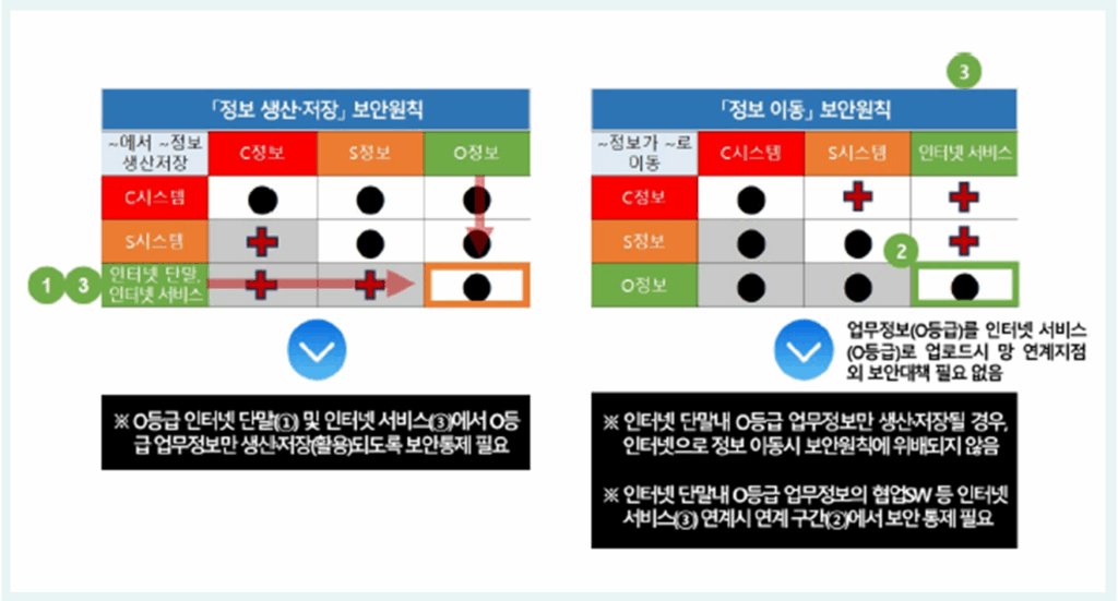 •  인터넷 서비스에서 생성한 O등급 정보는 인터넷 단말로 전송할 수 있으나, 환경에 따라 추가 보안통제가 필요할 수 있다.
