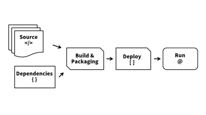- 소스와 의존성 정보 등을 빌드하여 패키지 파일로 만드는 단계는, <책 한 권>을 만드는 과정과 닮았습니다. 이는 편집자와 디자이너가 원고를 교정하고 조판하여 표지와 목차를 붙인 뒤 실제 서점에 내놓을 수 있게 제본하는 과정입니다.