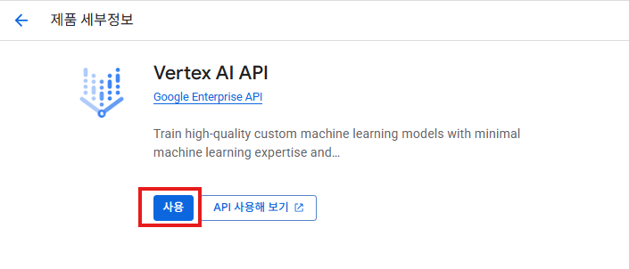 1. Vertex AI API 활성화: GCP 콘솔에서 Vertex AI API 사용 설정.