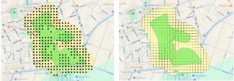 <(좌)격자 데이터 생성 전 (우)격자 데이터 생성 후>