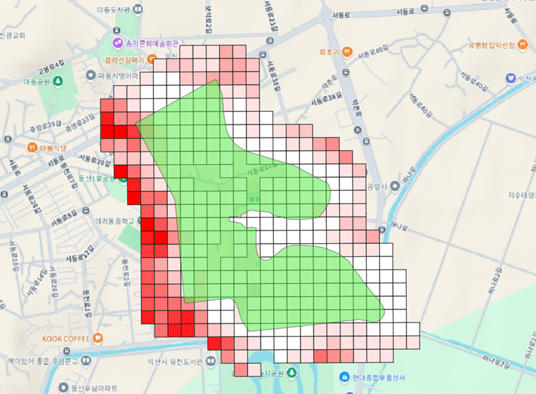 – 행정구역 단위보다 세밀하게 공간적 분포를 표현할 수 있어, 인구 · 매출 · 교통량 등 다양한 지표를 균일한 단위로 비교 및 분석할 때 활용합니다.